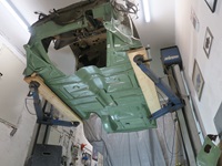 OK, die Heckklappe hat Probleme, aber das kann man ja auch später ordentlich machen. Also erstmal eine Notreparatur. Und nachdem der Farbton angemischt ist aus Mattschwarz und Resedagrün 6011 kann endlich mal was lackiert/gestrichen werden...